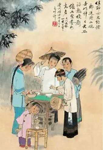 七夕乞巧,這個節(jié)日起源于漢代,東晉葛洪的《西京雜記》有“漢彩女常以七月七日穿七孔針于開襟樓,人俱習之”的記載,這便是我們于古代文獻中所見到的最早的關于乞巧的記載。后來的唐宋詩詞中,婦女乞巧也被屢屢提及,唐朝王建有詩說“闌珊星斗綴珠光,七夕宮娥乞巧忙”。據《開元天寶遺事》載:唐太宗與妃子每逢七夕在清宮夜宴,宮女們各自乞巧,這一習俗在民間也經久不衰,代代延續(xù)。